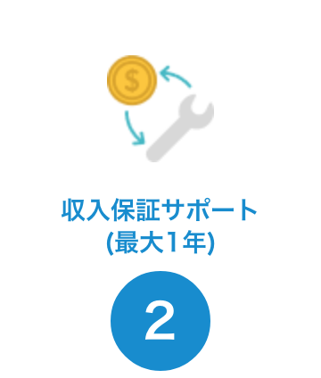 収入を最大で1年間保証致します。次の案件の受注が決まっていない際の収入の不安を解消致します。
